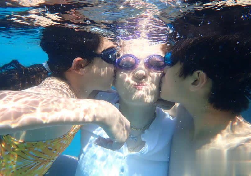 先看这组水下照片,画面特别温馨,没有一点摆拍的痕迹,满是家人间的松弛感。